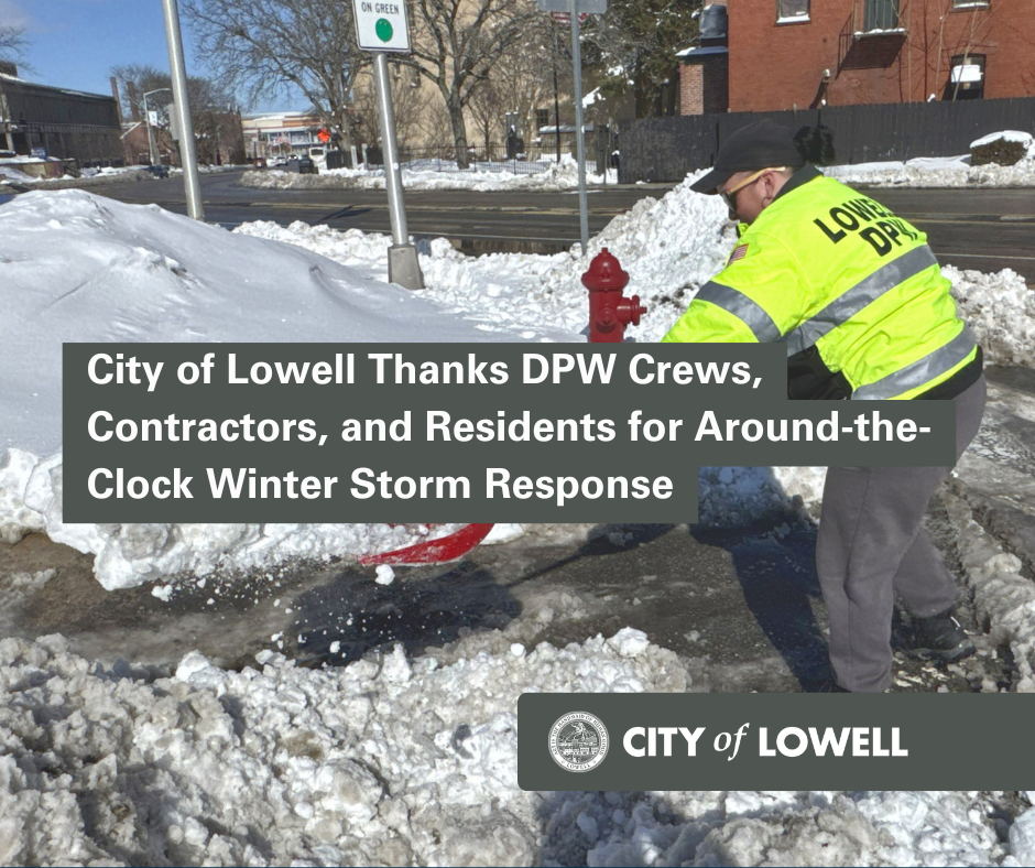The City of Lowell would like to extend sincere thanks to the staff at DPW, the contract workers, and the residents for working together over the past three weeks of intense winter weather.
