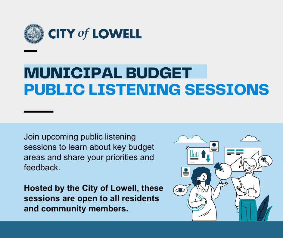 The City of Lowell invites residents and community members to join upcoming Municipal Budget Listening Sessions. This is your opportunity to learn about key budget areas, ask questions, and share your priorities and feedback.